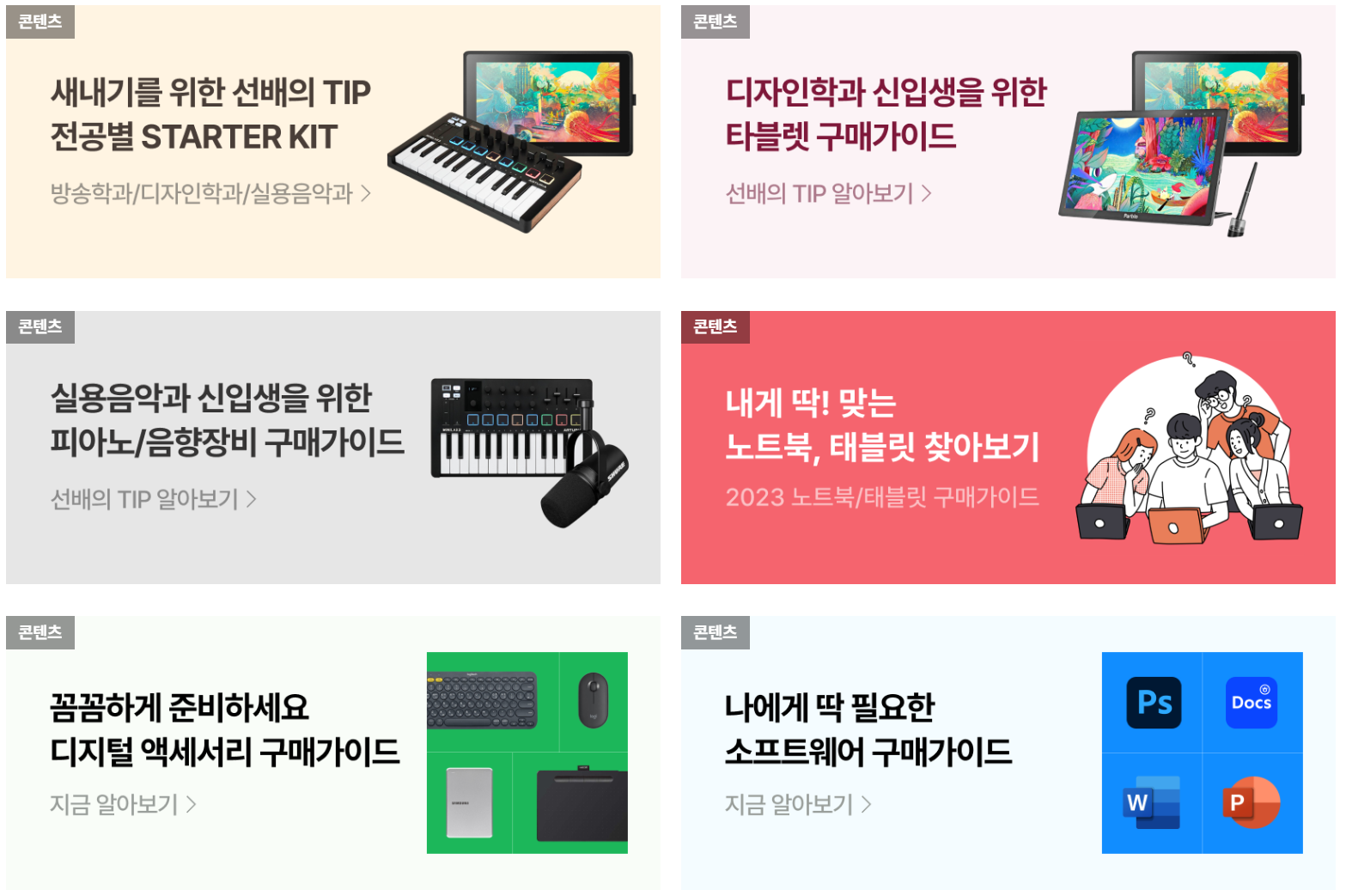 학생복지스토어는 단순한 학생 할인 쇼핑몰만으로는 그치지 않습니다. 다양한 콘텐츠를 통해 GenZ 이용자들을 매료시키고 있습니다. 먼저 신입생을 위한 전공별 필수템, IT 초보를 위한 구매 가이드와 같은 유용한 정보 콘텐츠를 제공하고 있습니다. 이를 콘텐츠를 통해 학생들은 자신에게 필요한 제품을 선택할 때 도움을 받을 수 있습니다. 그리고 흥미로운 콘텐츠도 제공하고 있습니다. 예를 들면, 아이패드 필기 어플 추천, 책상 꾸미기(데스크테리어), 패션 브랜드 룩북, 대학생 핫플 소개와 같은 재미있는 콘텐츠를 제공합니다. 이렇게 학생복지스토어는 학생들의 학업과 일상에 유용한 정보와 흥미로운 콘텐츠를 제공하여 학생들의 삶을 더욱 풍요롭게 만들어주고 있습니다.